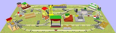 (1) Plasticville #1602 post office (1) Plasticville #1611 hardware store (1) Plasticville #1612 5 & 10 store (1) Plasticville #1853 drug store (1) Plasticville #1801 bank (1) Plasticville 1613 large super market (2) Plasticville 1620 loading platform (4) Plasticville 1200 station platform (4) Plasticville 1901 Union Station platform (1) Plasticville 1905 Town hall / Independence hall (1) Plasticville $1703 Colonial mansion (1) Plasticville 1701 New England ranch home (4) Plasticville #1502 Cape Cod house (2) Plasticville 1629 bungalow house (1) Plasticville 1901 Union Station w/o platforms |