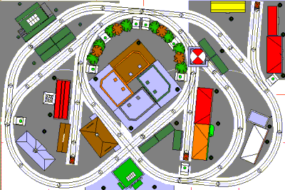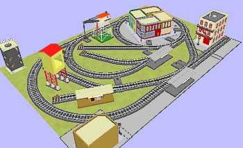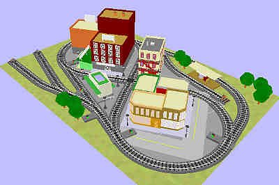 This layout is a small shunting railway combined with a commuter or streetcar operation. The "yard" is on the corner of an urban environment.