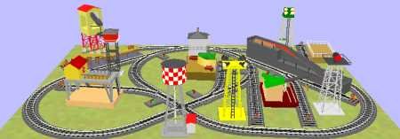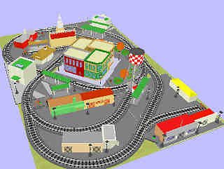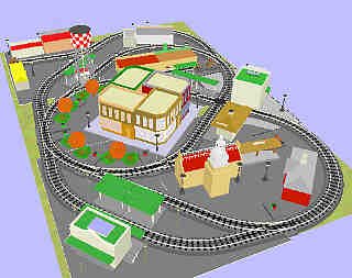 | Notes for the hobbyist: we have tried to use coordinating MTH accessories as much as possible on these Real Trax plans. However, we have also used other brands. In some cases, duplicate pieces were used. A good hobbyist can change the duplicated by using paint and graphics, giving different signs to stores, etc. As you can see, we pack a lot of action in these little railways. |