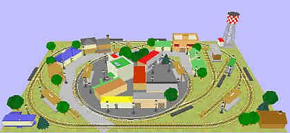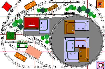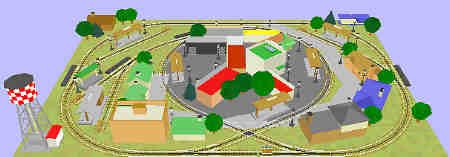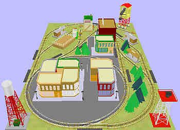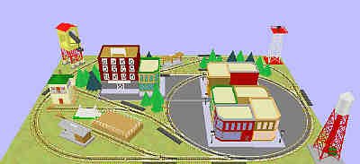 Our example is the "edge of town." You have the ability to do freight drills, use operating trackside accessories, and even have a commuter system linking "town" with the outlying suburbs.