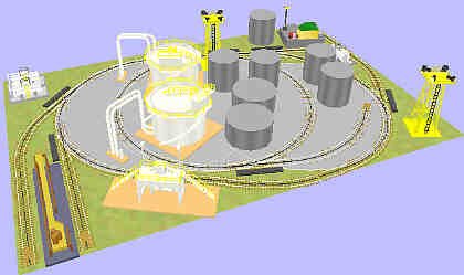 You don't see many refinery layouts.This one uses operating accessories and static tanks together. There is even a barrel loader to load oil drums. For the fan of tank cars, it is excellent! Also a fine way to add a refinery when extending an existing layout.