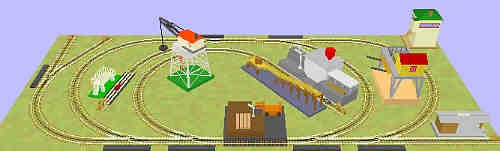 Simple track plan for a small freight shunting operation. There are many opportunities for a hobbyist to add scenery here.