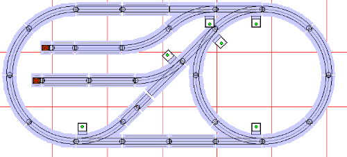 This layout is fine for small freight drill operations, or a trolley run, or both. You have room to spot individual cars on sidings. ( 8) MTH 40-1002 O-31 curve ( 8) MTH 40-1001 10 inch straight ( 3) MTH 40-1005 O31 lefthand switch ( 1) MTH 40-1018 3.5 in straight ( 1) MTH 40-1017 4.25 in straight ( 4) MTH 40-1004 O31 righthand switch ( 3) MTH 40-1016 5.0 in straight ( 3) MTH 40-1024 bumper 12.95 Total of 31 pieces |