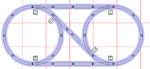 Loops like this make for good trolley and transit operations. (10) MTH 40-1002 O-31 curve ( 4) MTH 40-1001 10 inch straight ( 2) MTH 40-1005 O31 lefthand switch ( 4) MTH 40-1004 O31 righthand switch ( 1) MTH 40-1018 3.5 in straight ( 1) MTH 40-1016 5.0 in straight Total of 22 pieces |