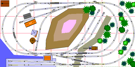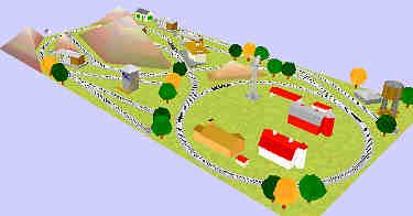 Though these track plans use the HO EZ-track, they can accommodate either HO or ON30 trains. ON30 is a small type of O scale narrow-gauge railroad which runs on HO track. The plans offer a variety of operations. Our examples depict them with scenery scaled for ON30. HO structures would be smaller, using about 1/4 as much space. HO is approximately half the length, width and height of O. You can use these plans for either type of train.
