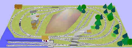 An excellent mining / logging pike in a rural area which also provides commuter service. Two farms at one end are a contrast to hills at the other end. (16) BachmannEZ 9 inch straight (22) BachmannEZ R-18 30° curve (4) BachmannEZ 4.5 inch straight (1) BachmannEZ #5 lefthand turnout (5) BachmannEZ std lefthand turnout (1) BachmannEZ terminal straight (10) BachmannEZ Hayes bumper (4) BachmannEZ std righthand turnout (3) BachmannEZ inch straight (2) BachmannEZ 3 inch straight (1) BachmannEZ terminal curve R18 (1) BachmannEZ 90° cross (1) BachmannEZ #5 wye turnout (1) BachmannEZ R-18 15° curve
