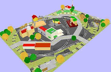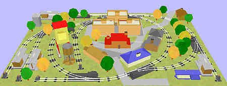 In our example, the suburban town is surrounded by woods and industrial sidings. In keeping with the times, a new apartment / condominium development takes up half of the residential area.