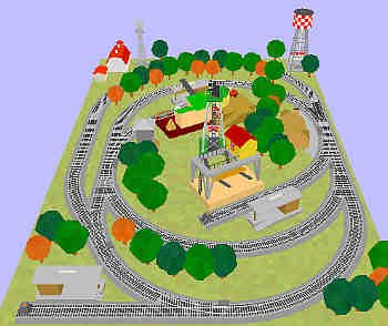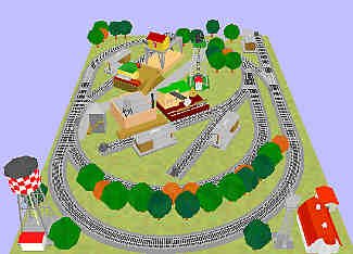 A slight variation makes it better for running trains over the distance. (19) S-Trax #259 R-19 30° curve (5) S-Trax #298 #3 righthand turnout (2) S-Trax #299 #3 lefthand turnout (4) S-Trax #257 15inch straight (3) S-Trax #292 R-24 30° curve (1) S-Trax cut 15inch straight (3) AF #730 lighted bumper (1) Lionel® 2300 oil drum loader (3) Plasticville 1620 loading platform (1) Plasticville 1402 switch tower (1) Plasticville #1601 barn (1) Plasticville #1617 corn crib (1) Plasticville #1408 windmill (1) Plasticville 1701 New England ranch home (1) MTH 30-9119 AF #787 log loader (1) MTH 30-9122 AF #796 sawmill (1) MTH 30-9126 AF#23780 lamplighter (1) MTH 30-11051 AF#23772 water tower |