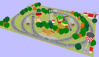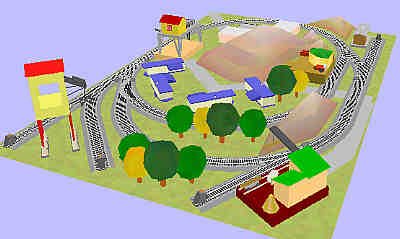In this case, we have used a small airport in the center of the railway. You can comfortably place trackside accessories and still have room for scenery.