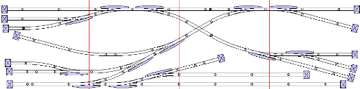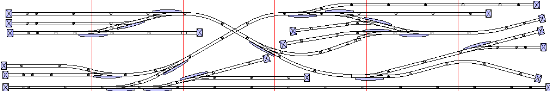 The 1' by 4' layout is the above layout trimmed for a shorter space. This time, the connection between the two rail lines is at top center, above the crossover. (17) Atlas-N 5.0 in straight (8) Atlas-N #2701 standard #4 right-hand turnout (2) Atlas-N custom Flex Track curve (2) Atlas-N 0.63in straight (5) Atlas-N #2700 standard #4 left-hand turnout (1) Atlas-N R-9.75 cut curve (15) Atlas-N track bumper (6) Atlas-N 2.5in straight (3) Atlas-N 1.25in straight (1) Atlas-N #2568 60° cross (2) Atlas-N R-9.75 15° curve (4) Atlas-N R-19 15° curve Total of 66 items |
