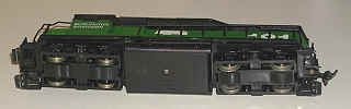 This Burlington Northern locomotive was made by Lionel In this photo, you can see the bent handrail. |