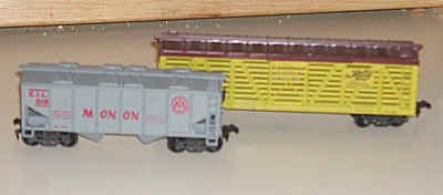 Here are the cars - a covered hopper and stock car. |