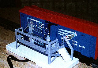 This automatic boxcar has a mailbag which is "thrown" when the door opens. |