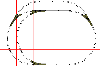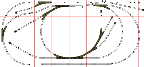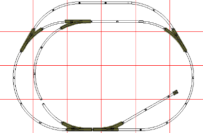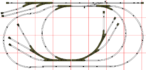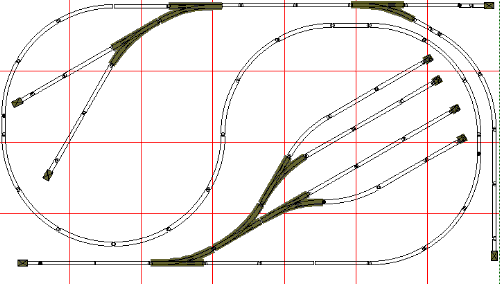 This variation has fewer spur tracks, allowing for more continuous running. You can easily add four to six inches to a 4' by 8' base to make enough space. |