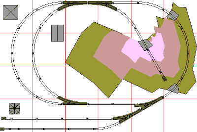 This layout would be perfect for a Holiday set-up. One train would run continuously on the loop, and cars can be parked on the sidings for appearances. You can also use the spurs for extra trains, running them in turn. The mountain has three tunnel entrances. |