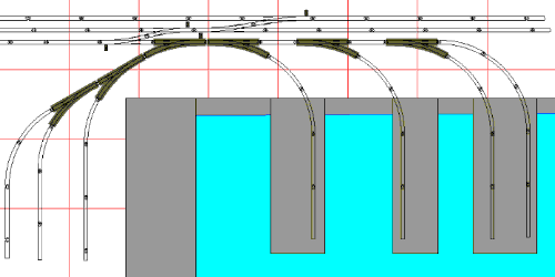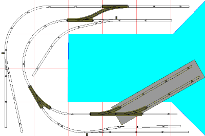 This version with 15" curves allows another siding. Top two sidings would be linked with mainline freight service |