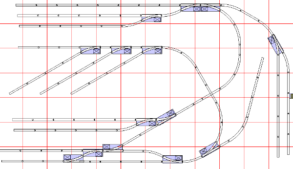 Here is the same layout set up as a waterfront operation. You can also use it as a regular inland freight operation. (17) AF #702 S-40 curve (1) AF 90° cross (73) AF #700 straight (10) AF #720 remote left-hand turnout (7) AF #701 half straight (4) AF #720 remote right-hand turnout (1) AF #703 S-40 half curve Total of 113 items |