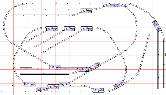 This 6' by 8' layout is a simple waterfront operation. It can stand alone, or be appended to a larger mainline railway layout. The yard in the upper right corner is the connection with a mainline hauler. Inside the upper loop are the waterfront railway 's facilities. (29) AF #700 straight (15) AF #702 S-40 curve (3) AF #703 S-40 half curve (4) AF #720 remote left-hand turnout (3) AF #720 remote right-hand turnout (4) AF #701 half straight (1) AF #722 right-hand manual turnout Total of 59 items |