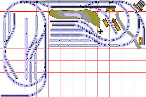 A 4' by 8' extension to the left, interchanging at the top, provides a mainline loop system with spurs and yards for lineside industries and railroad facilities. (42) S-Trax #258 10inch straight (30) S-Trax #259 R-19 30° curve (13) S-Trax #298 #3 righthand turnout (2) S-Trax cut 15inch straight (7) S-Trax #299 #3 lefthand turnout (10) S-Trax #257 15inch straight (4) S-Trax #292 R-24 30° curve Total of 108 items