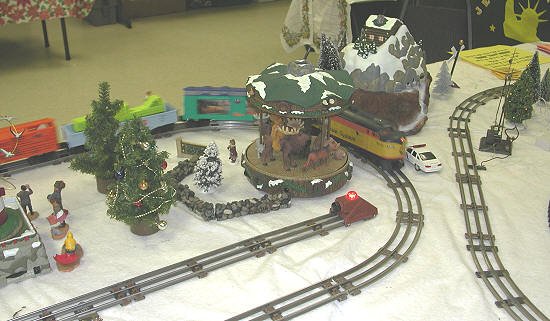 The train passes between the woodland carousel and animated ski mountain. Both accessories are very popular with children |
