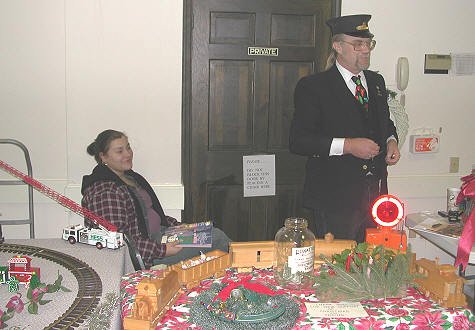 From the beginning of the show, Gary Crawford has brought two portable layouts and has set up an impromptu G scale pike. They are part of every show. The HO railway showcases a tongue0-in-cheek look at New Jersey, along with a very realistic model engine shop. The G scale pike is a place to show antiques and vintage items from Yuletides past.