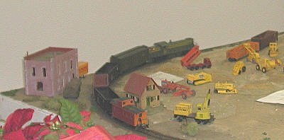 Gary's HO railway conveys some local lore. The train has a Jersey Central loco and caboose with cars from various New Jersey railroads. |