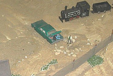 An active member of the Pine Creek Railroad at Allaire State Park, Gary imparted his expertise to real railroading in this scene. The open-topped Engine house allows visitors to see the inside with its realistic details. |