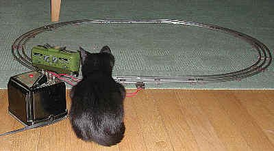Little Railfan: kitten Shadow is fascinated. |