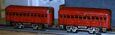 Marx passenger cars "Bogota" and "Montclair," named for NJ towns |