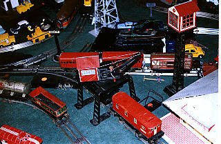 A tinplate freight yard with gantry crane and switch tower, |