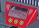 Close-up of the panel under the robot;s face shows a screen with moon scene looking toward a planet. |