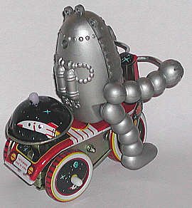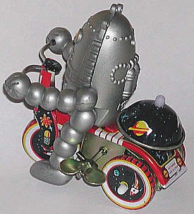 This one was called a "Baby Robot" because it resembles a child on a tricycle. Egg-shaped head and ball-joint arms are like the "Robbie" robot. |