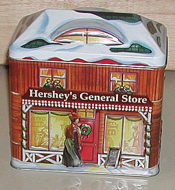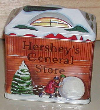 The tin houses depicted here are for popular brands of candy. Hershey and Cadbury have put out tins for several years now.