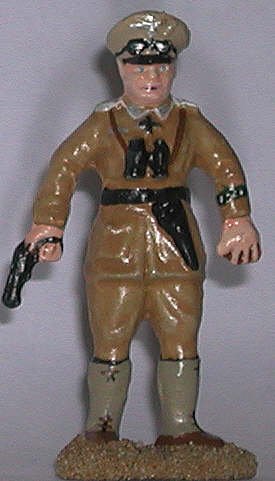 The figure of a German officer is supposed to be Rommel. I doubt Rommel ever stood like that! As anachronisms go, our German officer is armed with a revolver! The usual issue for German officers was the Walthers P-38 Automatic Pistol or the P-08 Luger Automatic Pistol..