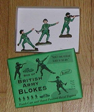 Kenya, Oman, the Middle East and Northern Ireland. Our trio of British Blokes includes an officer with Webley pistol, a grenadier and a soldier firing an automatic weapon. These are excellent poses packed with action. They are a piece of history marking Great Britain's military expeditions during the Cold War. By the way. "bloke" is British slang for a man.