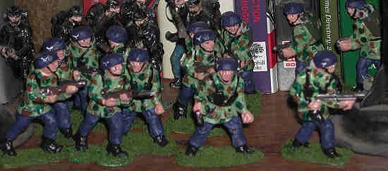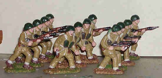 I have been having fun extending this idea. My examples are created from figures I cast. The mold contains copies of three Lone Star British Paratroopers, circa 1950. The uniform and field gear is identical to that used by World War II British soldiers. The weapons are of later vintage.