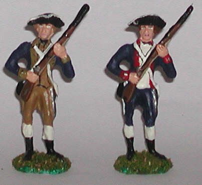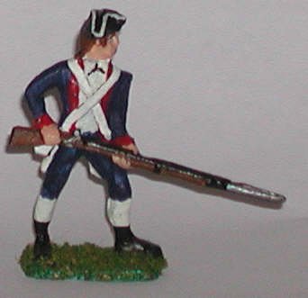 A Revolutionary War rifleman in the act of firing. His pose is not liquidly fluid, nor is it rigidly stiff. There is just enough animation to make him interesting. |