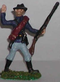 Here is a Civil War soldier waving. He is probably using his fellow soldiers forward. His uniform, equipment and pose are all consistent with the Union Army of the American Civil War |