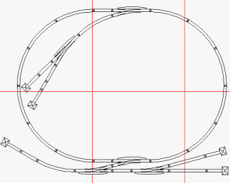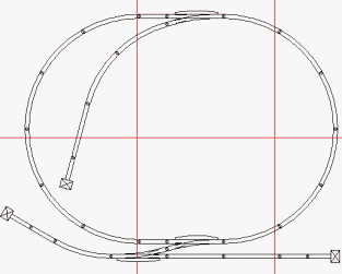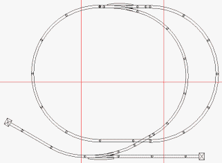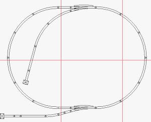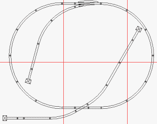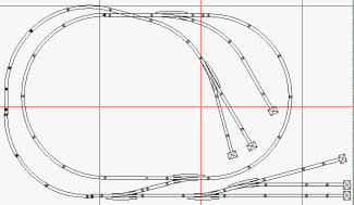 2' by 2' 6" (4) Atlas-N 2.5in straight (2) Atlas-N #2700 standard #4 left-hand turnout (16) Atlas-N R-9.75 30° curve (5) Atlas-N 5.0 in straight (4) Atlas-N track bumper (1) Atlas-N #2566 30° cross (2) Atlas-N R-9.75 15° curve