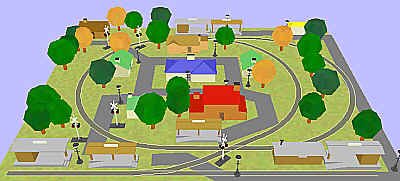 Here are how layouts from the EZ Track plans might look, if we did scenery for ON30 using Plasticville houses. A list of accessories is included with each layout.
