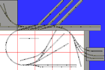 This 4' by 6' layout was inspired by the old Hoboken Shore Railroad.. The shaded area is a grade to a raised section that would include the yard in left bottom, plus the yard inside the right loop. I envision the right yard as railroad facilities, which the lower left spurs are interchanges with a mainline railroad. (You can connect to extend from that yard to a mainline railroad pike). The sidings inside the left loop are local industries, such as a propeller works. Note the use of double-slip crossover switches. (27) Pilz #83109 TT-gauge R-310 30° curve (41) Pilz #83101 TT-gauge 166mm straight (4) Pilz #83110 TT-gauge R-310 15° curve (3) Pilz #83300 TT-gauge slip switch (8) Pilz #83312 TT-gauge leftthand #4 turnout (3) Pilz #83105 TT-gauge 43mm straight (2) Pilz #83311 TT-gauge righthand #4 turnout (1) Pilz #83361 TT-gauge righthand #4 curved turnout (7) Pilz #83102 TT-gauge 83mm straight (2) Pilz #83103 TT-gauge 41.5mm straight (1) Pilz #83104 TT-gauge 36mm straight (1) Pilz #83362 TT-gauge lefthand #4 curved turnout (20) Pilz #83100 track bumper Total of 120 items |