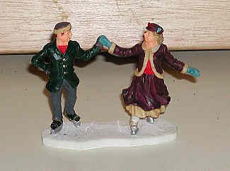 These skaters can be Victorian or circa 1920 - 1947. The clothing is indistinct enough to allow it to fit. |