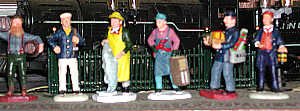 Character figures are those identified by a specific title or conspicuous, unusual feature. We have a bearded man who stands out for his unusual appearance, a sailor, a fisherman with a very notable fish, lobsterman with apron and trap, mailman with packages and a railroad conductor. Character figures add life to a scene when used judiciously. |