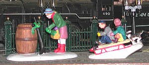 Interesting figures add life. The woman decorating the anchor is unusual, adding interest. The sledders always catch the eye. They denote a very fast speed. |