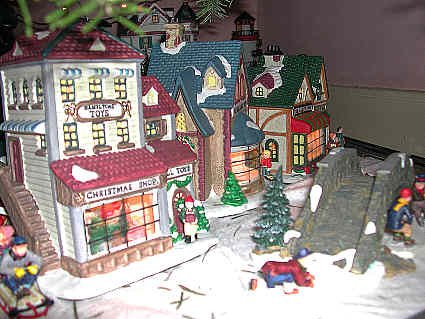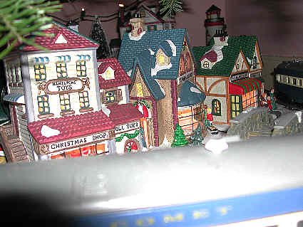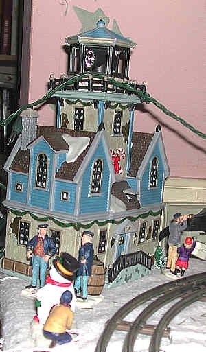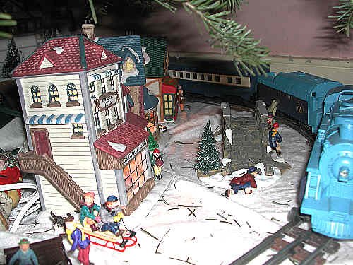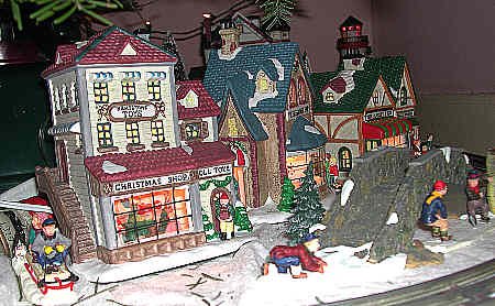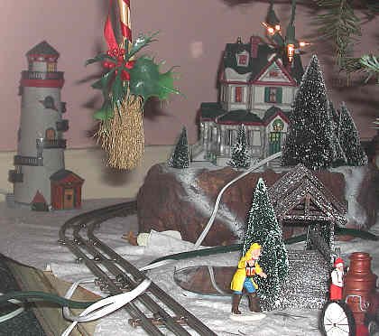 A small corner across the tracks was used for the nautical Village. Space did not allow for much spacing of figures to enhance the idea of distance. |