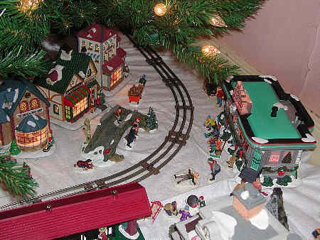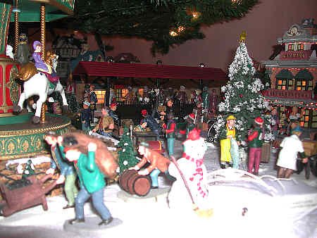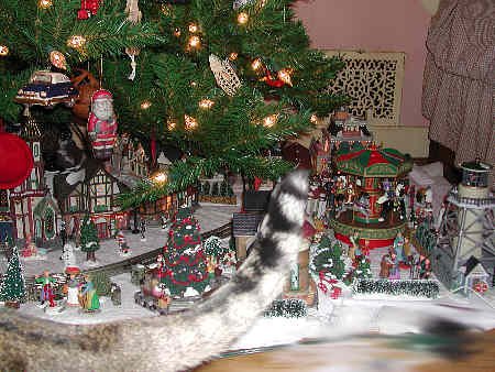 Victorian Village on the right end, with the cat getting in the way. Animated carousel and lighthouse are new this year. |