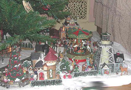 An overhead look at the extended outer Victorian Village. carousel and light house. |